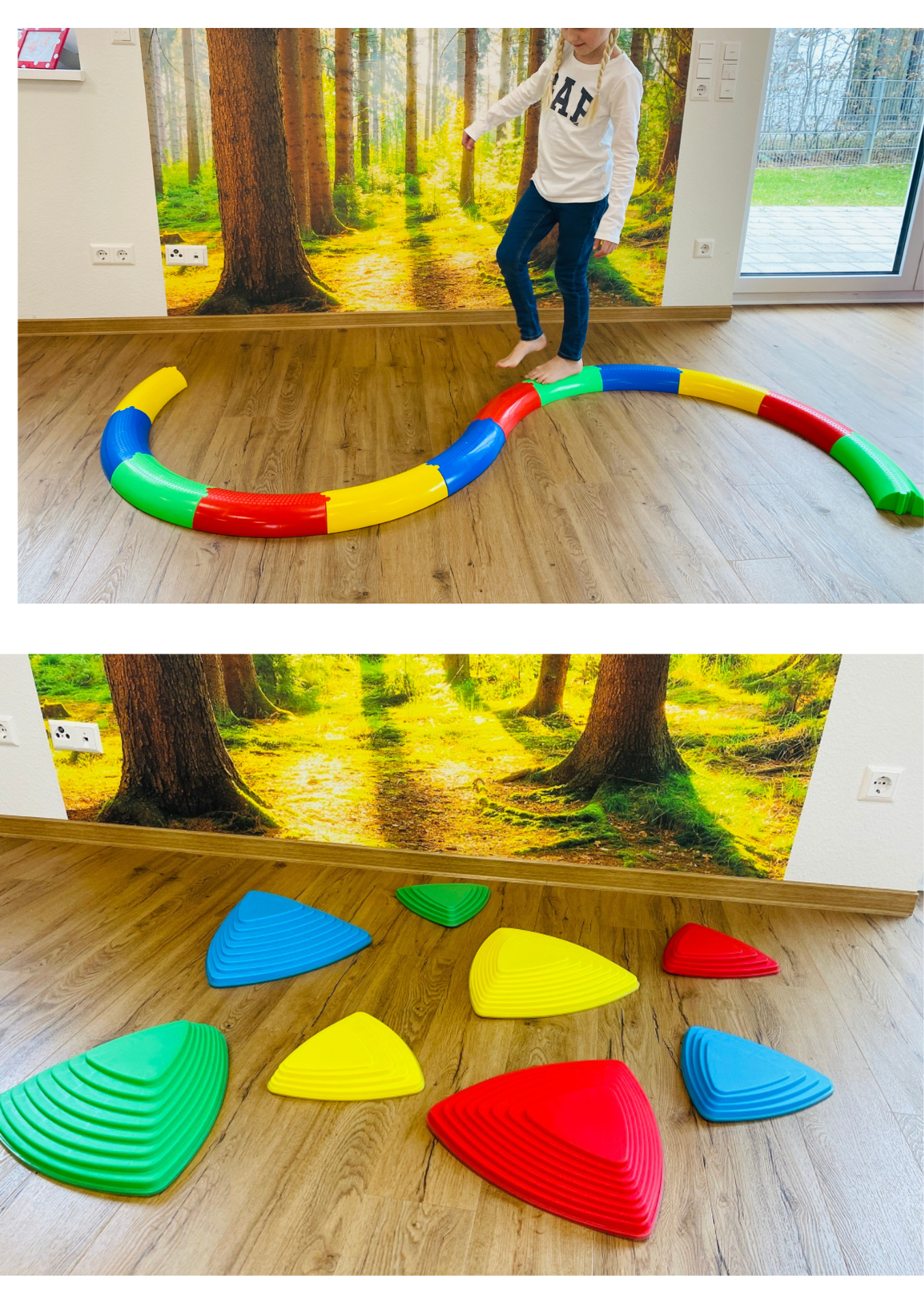 Die Balancier-Schlange und die Balancier-Steine sind perfekter Gleichgewichtstrainer für Kinder, mit dem spielerisch die Koordination und Balancierfähigkeiten verbessert wird. Mit dem praktischen Stecksystem der Balancier-Schlange können Kinder
