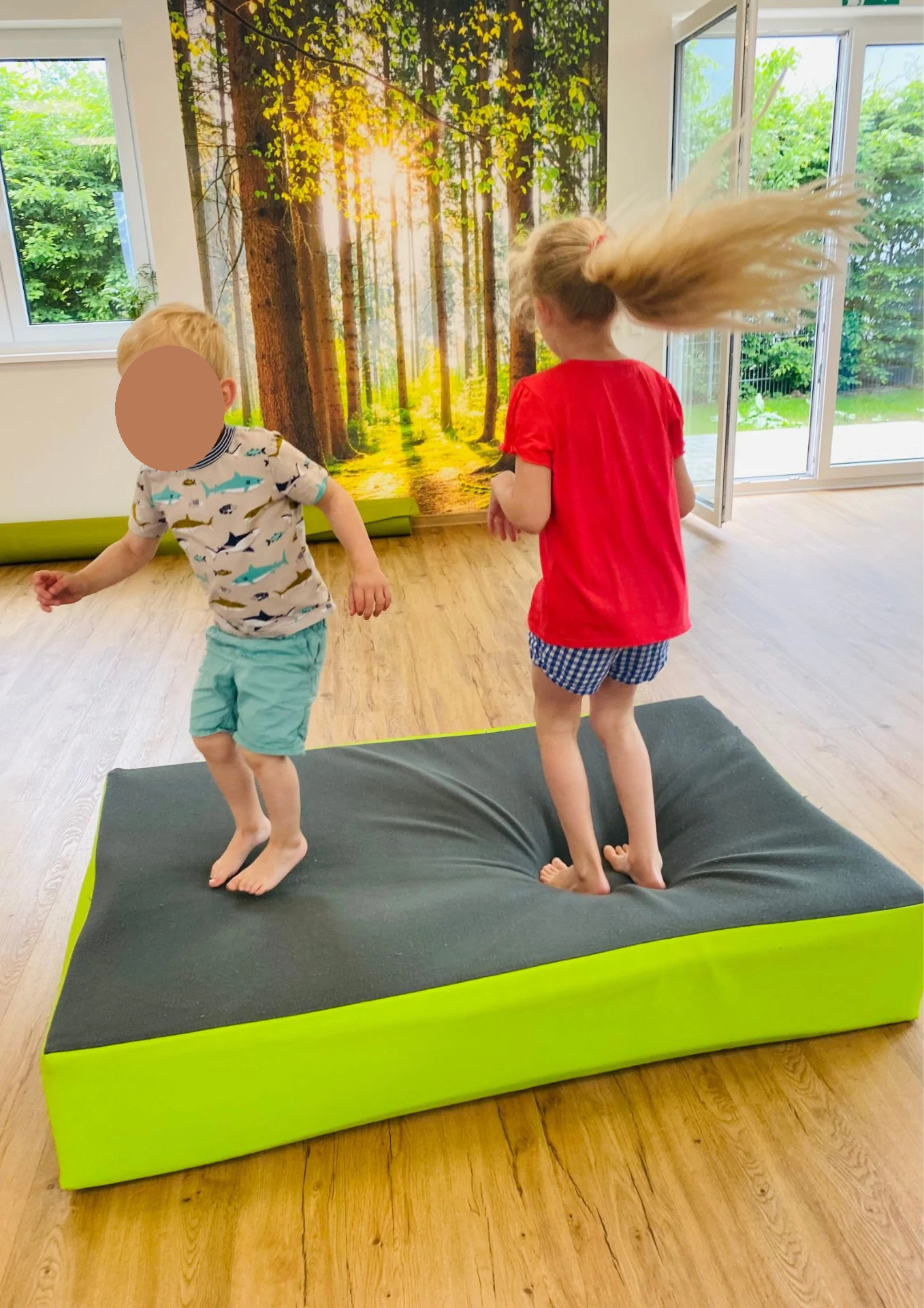 Viel besser als Turnen auf Sofas oder Betten: Auf dem Hüpfpolster JAKO-O